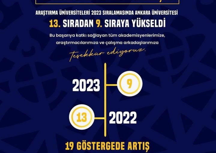 Özge Nur Kanat 1 yıl ago Araştırma Üniversiteleri 2023 Sıralamasında Ankara Üniversitesi 13.Sıradan 9. Sıraya Yükseldi!