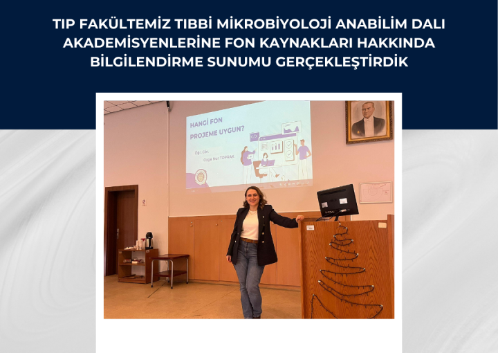 Özge Nur Kanat 10 ay ago Tıp Fakültemiz Tıbbi Mikrobiyoloji Anabilim Dalı Akademisyenlerine Fon Kaynakları Hakkında Bilgilendirme Sunumu Gerçekleştirdik
